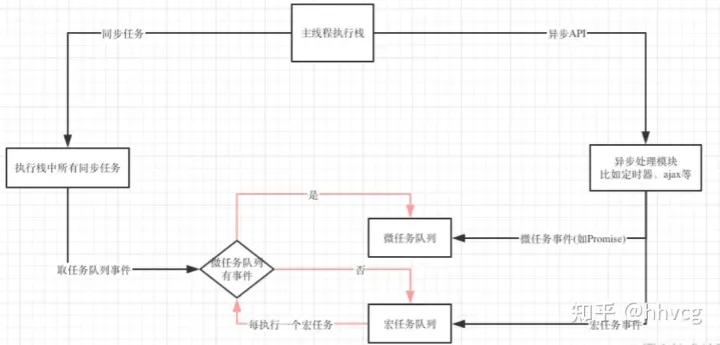 从图中能够看出,js执行完自身任务栈中的任务后,首先会遍历微任务队列,执行完所有微任务后,再去遍历宏任务队列,同时,每执行完一个宏任务都会再去查一下有没有微任务。总而言之,微任务优先。